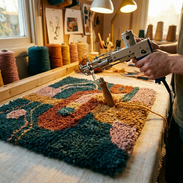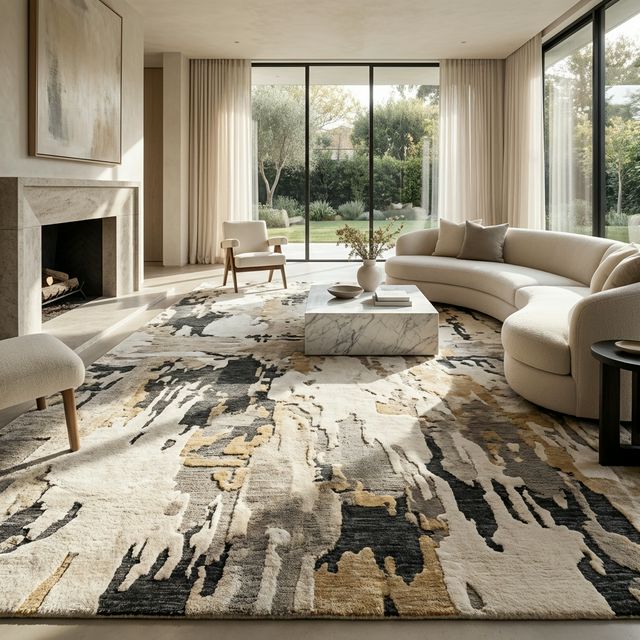 A dense, luxurious shaggy rug with a unique texture. Perfect for modern living rooms.